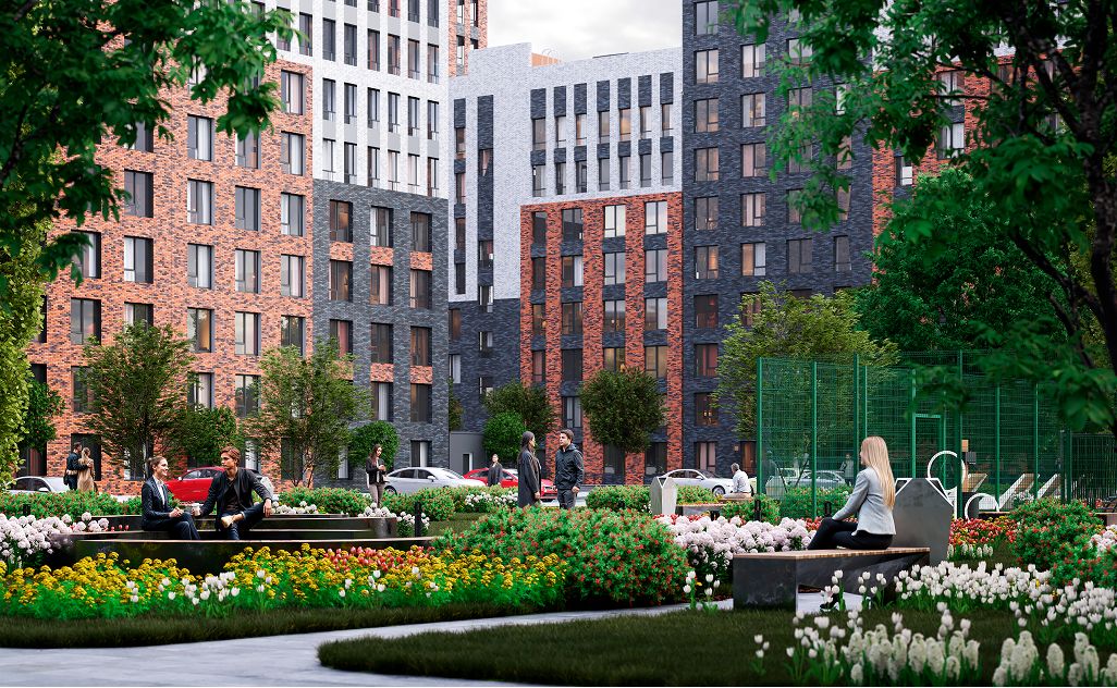 На закрытой территории резиденции есть сквер, площадка для выгула животных, двор с детской площадкой и спортивной зоной. Благодаря грамотному разделению пространства каждая зона существует в своём ритме, дополняя общую картину, но не мешая друг другу.