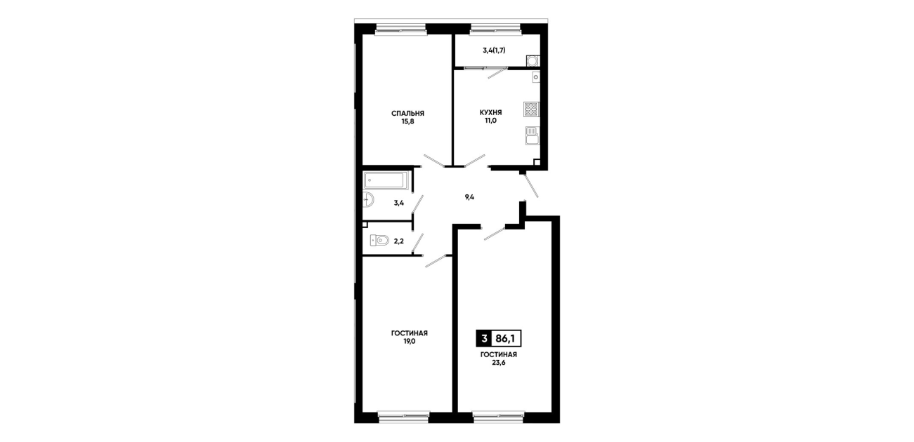 86,1 м²