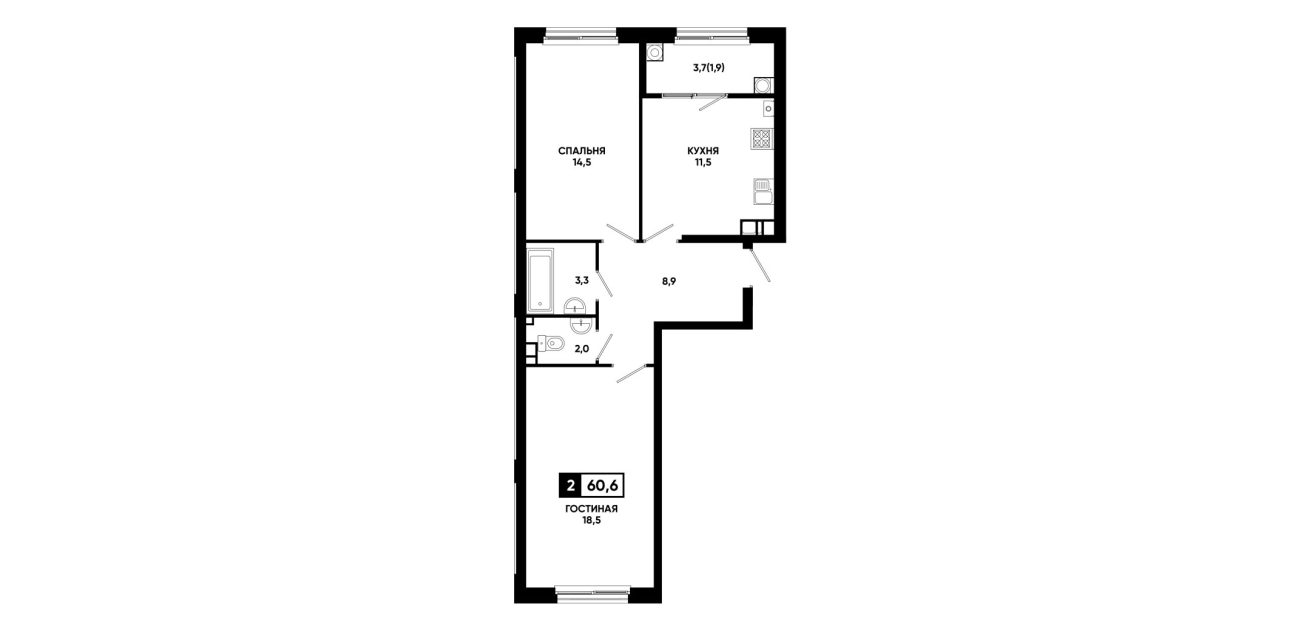 60,6 м²