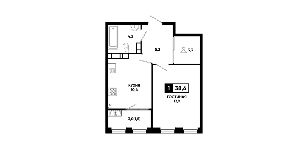 38,6 м²