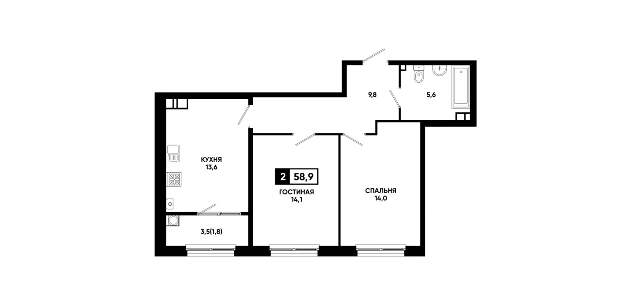 58,9 м²