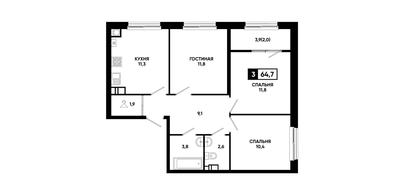 64,7 м²