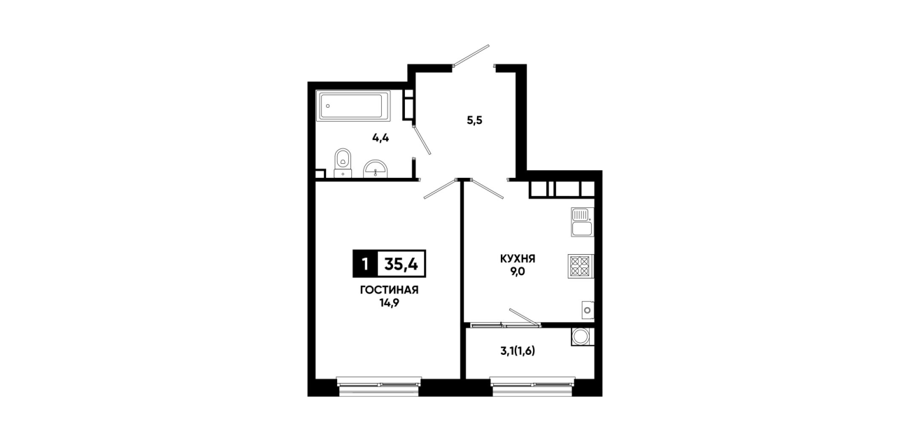35,4 м²