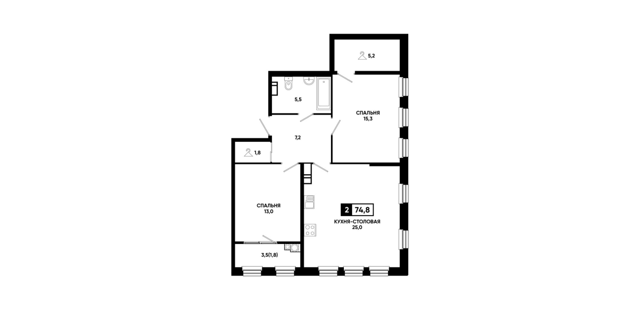 74,8 м²