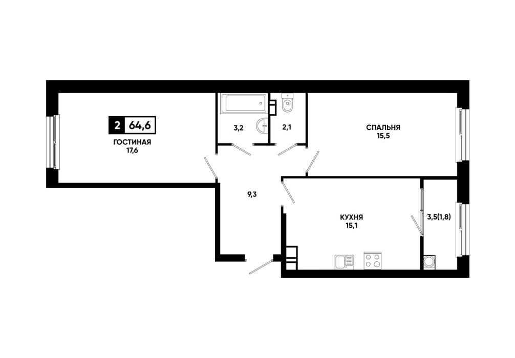 64,6 м²