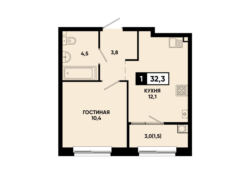 33,5 м²