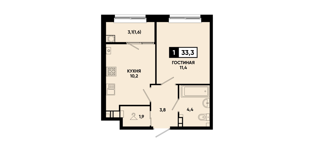33,3 м²