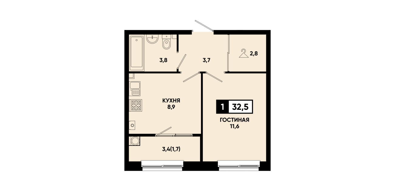 32,5 м²