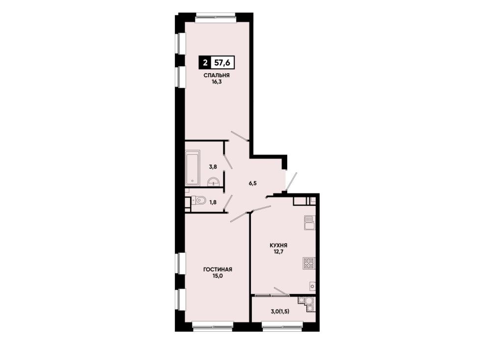 57,8 м²