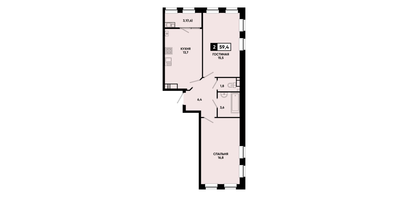59,4 м²