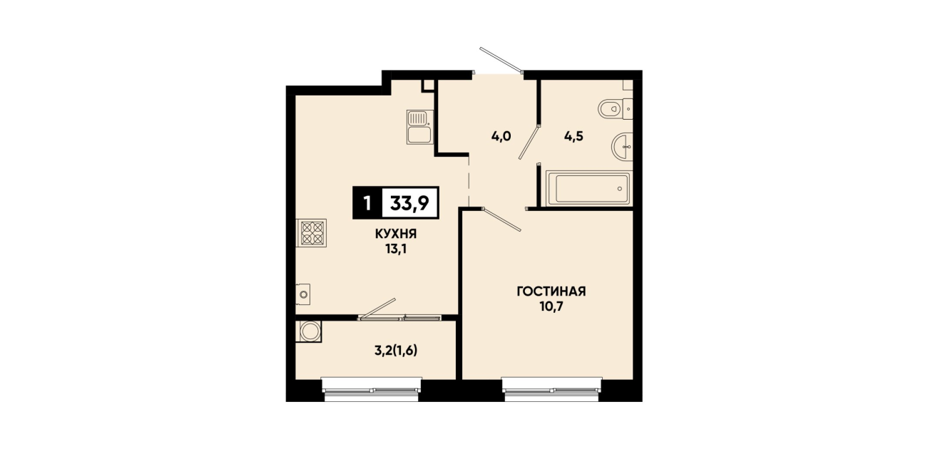 33,9 м²
