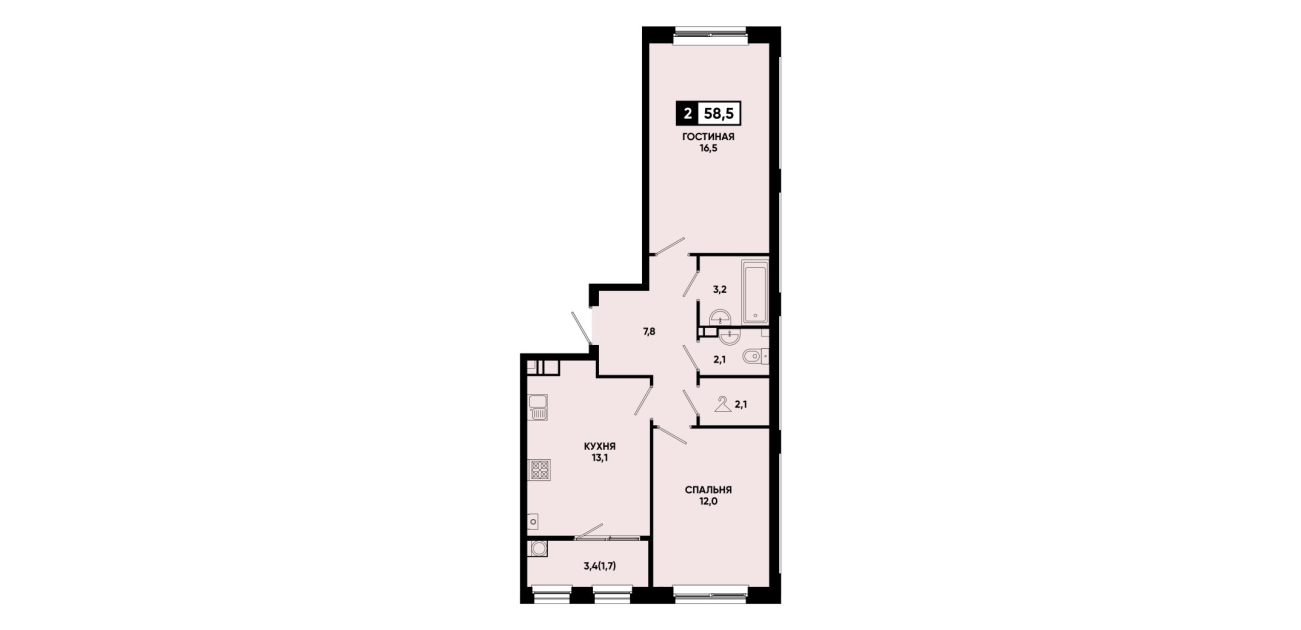 58,5 м²