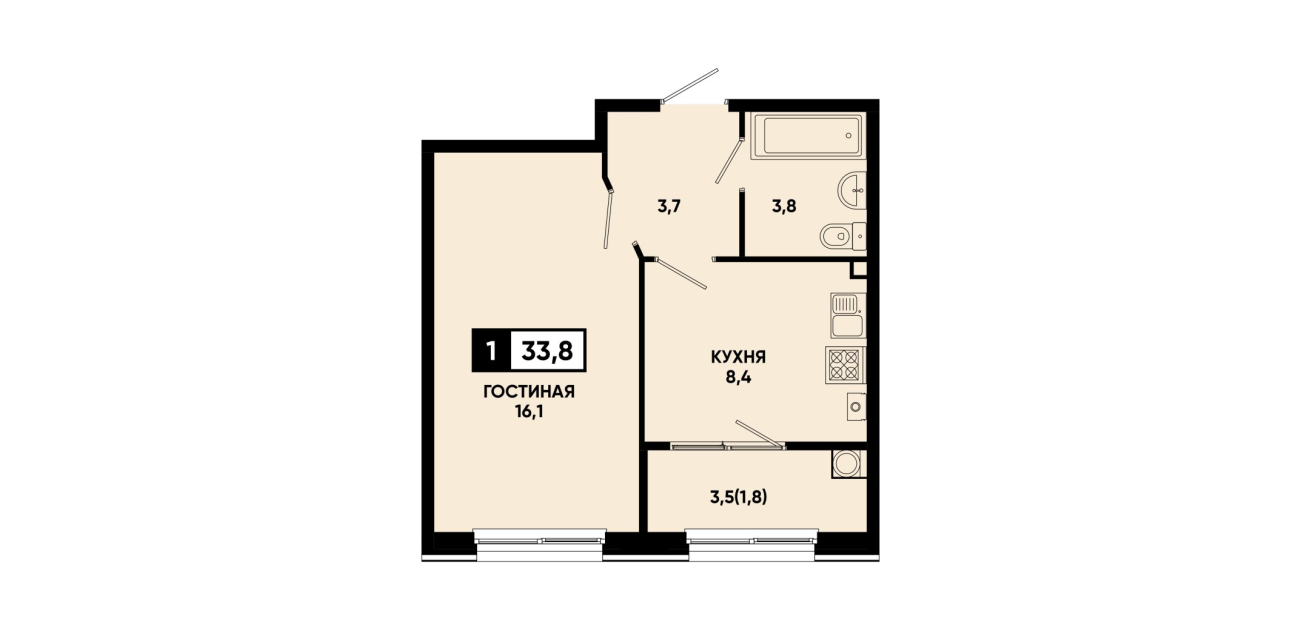 33,8 м²