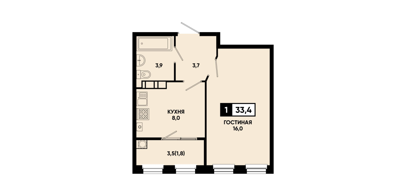 33,4 м²