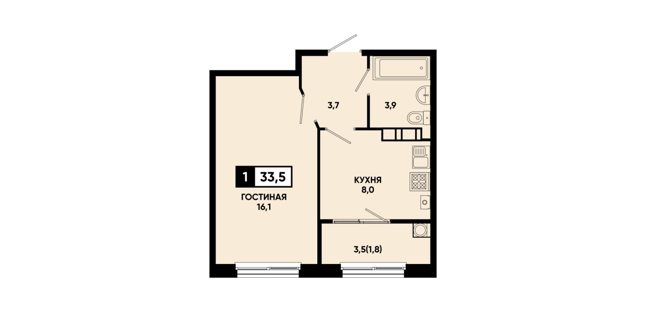33,5 м²