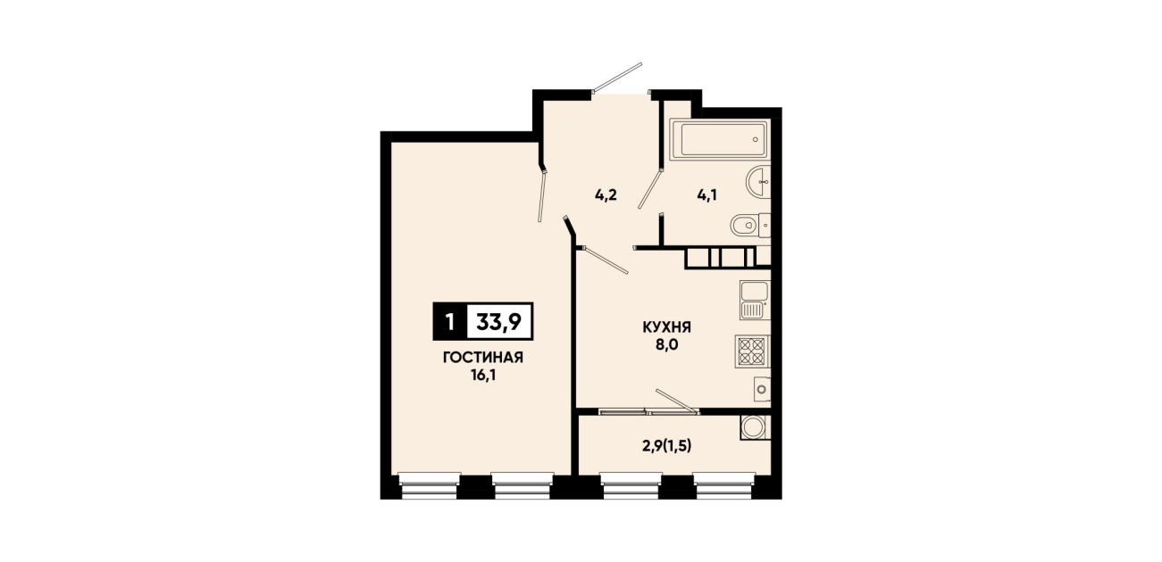 33,9 м²