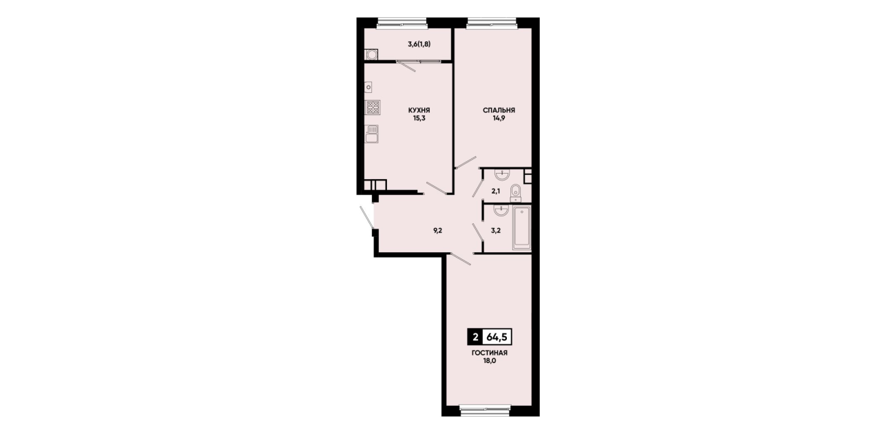 64,5 м²