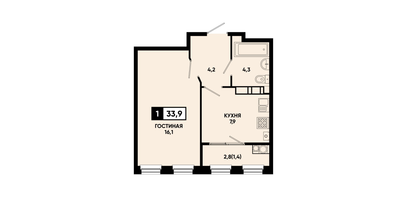 33,9 м²