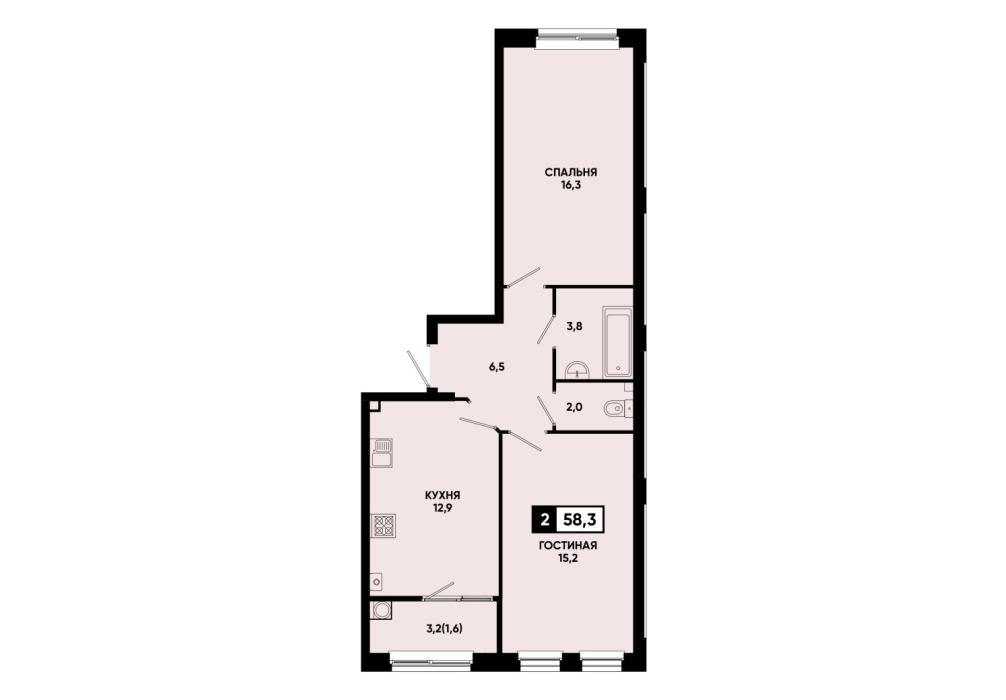 58,3 м²