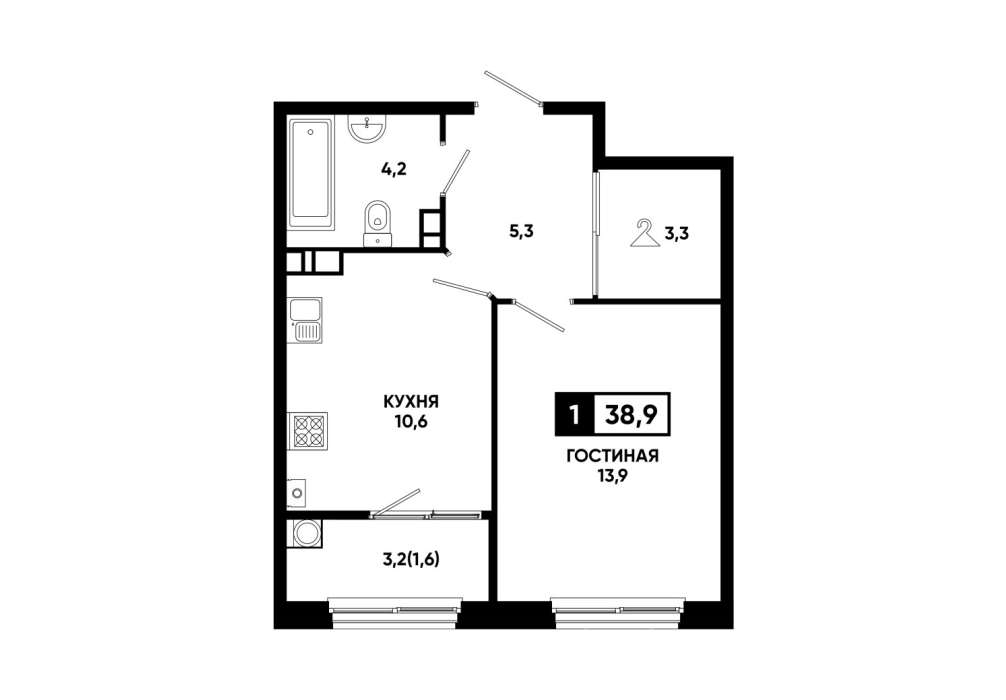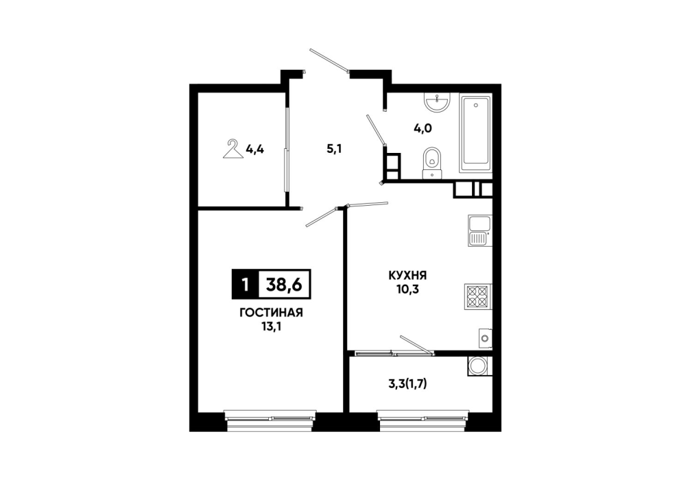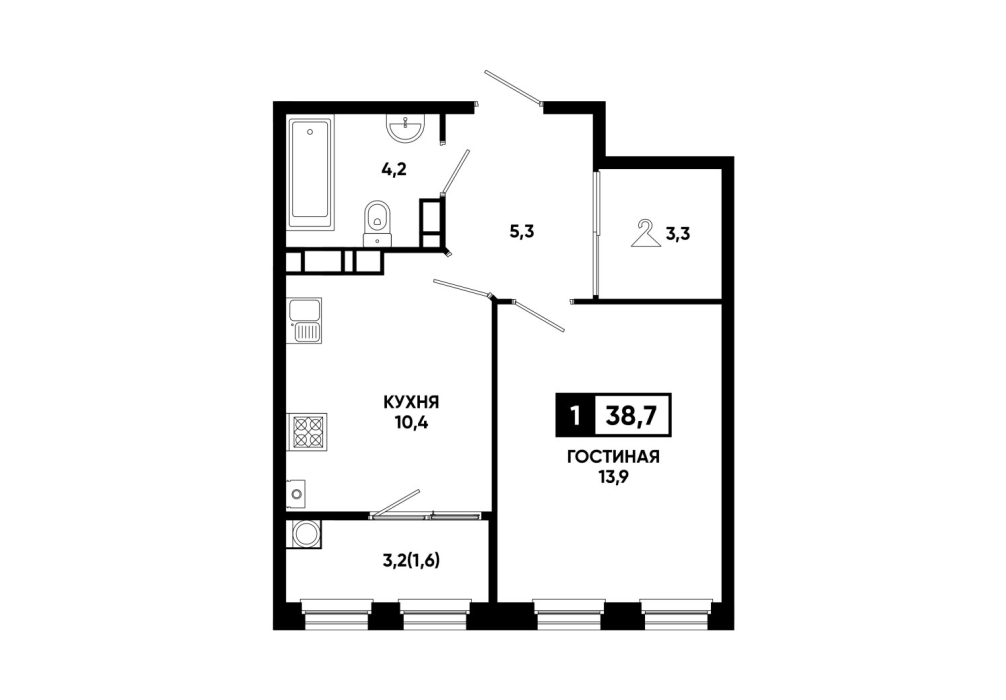 38,6 м²