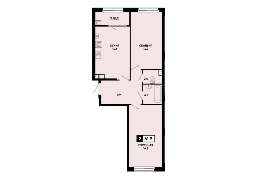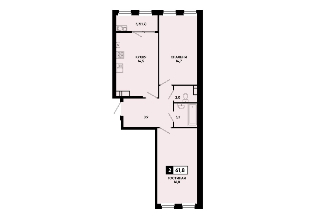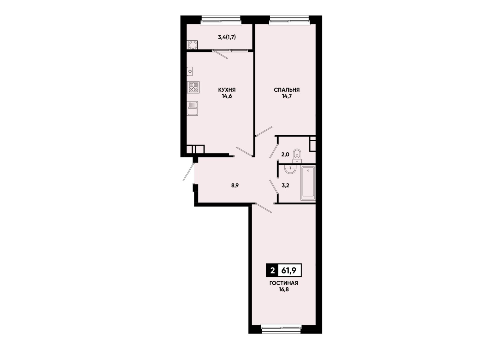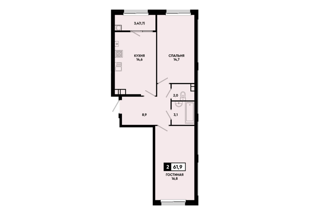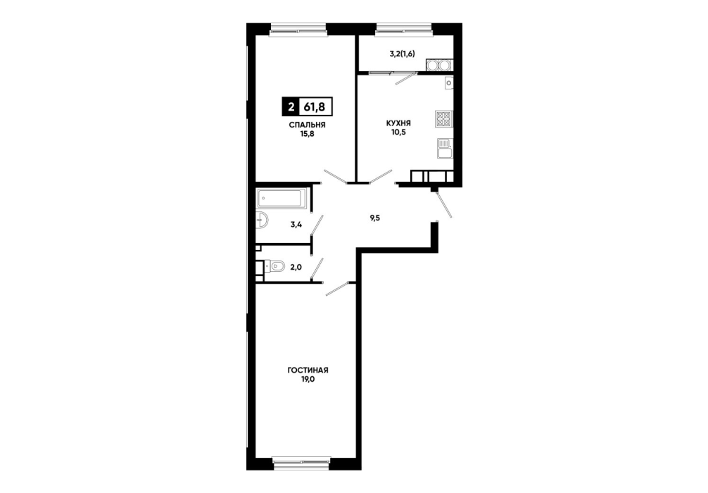 61,8 м²