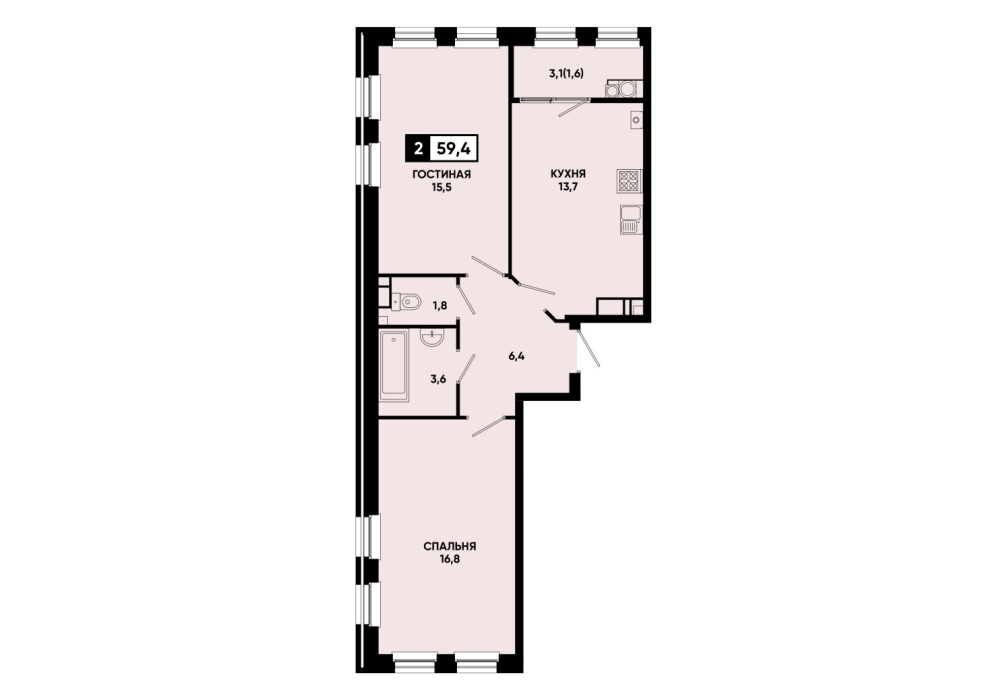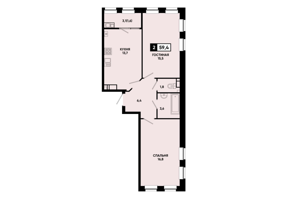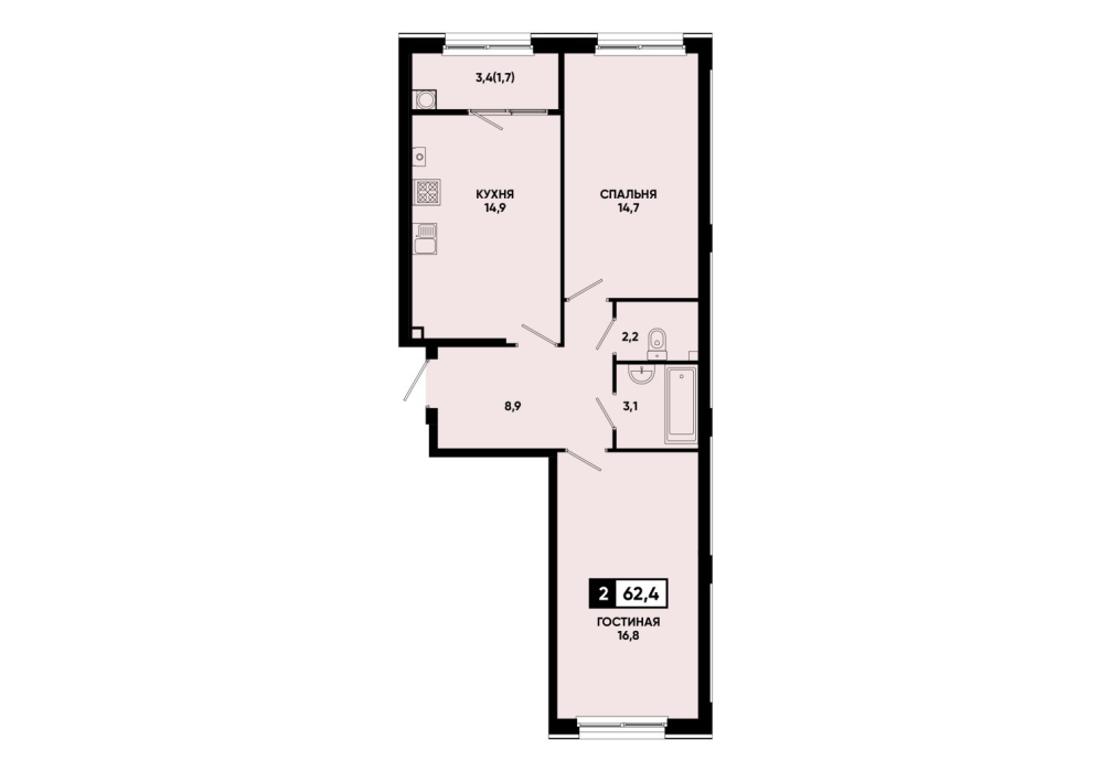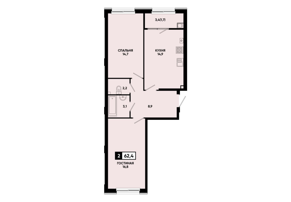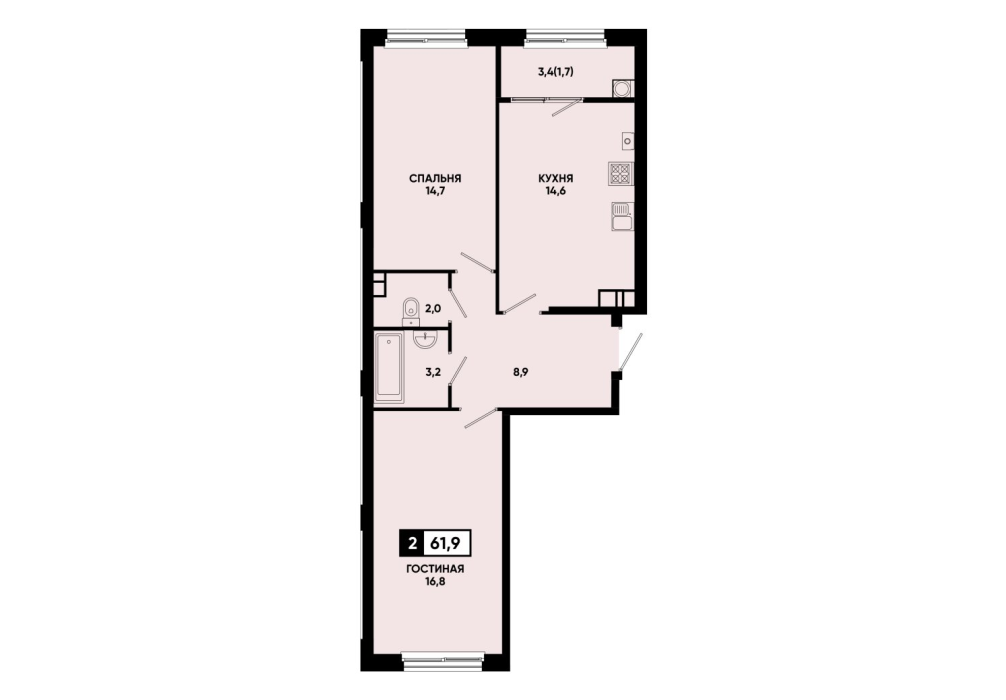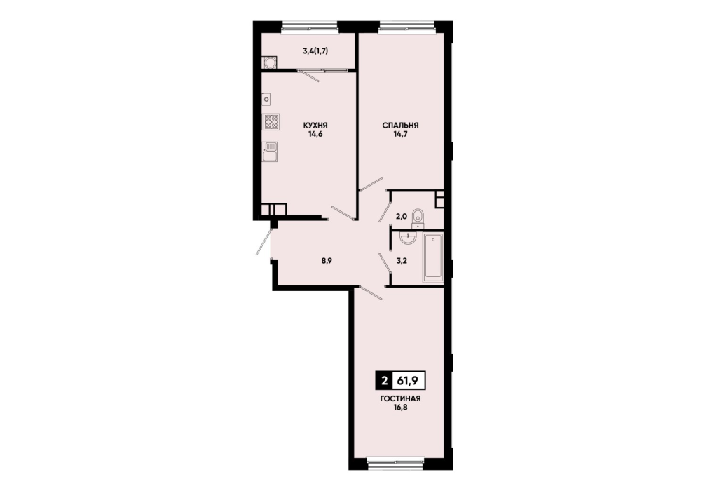 61,8 м²