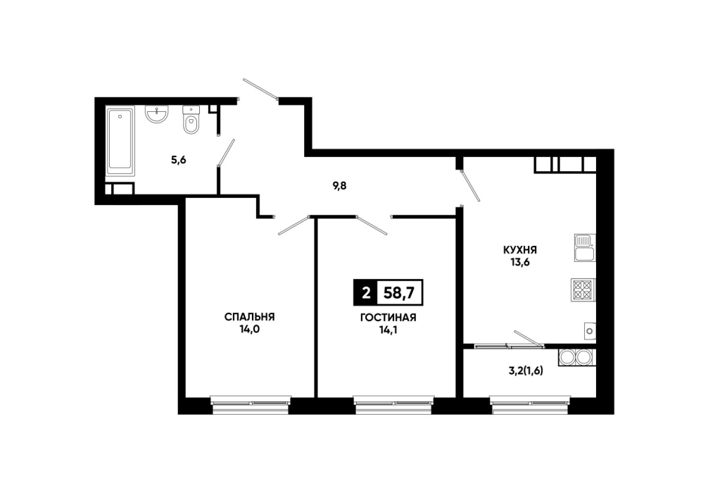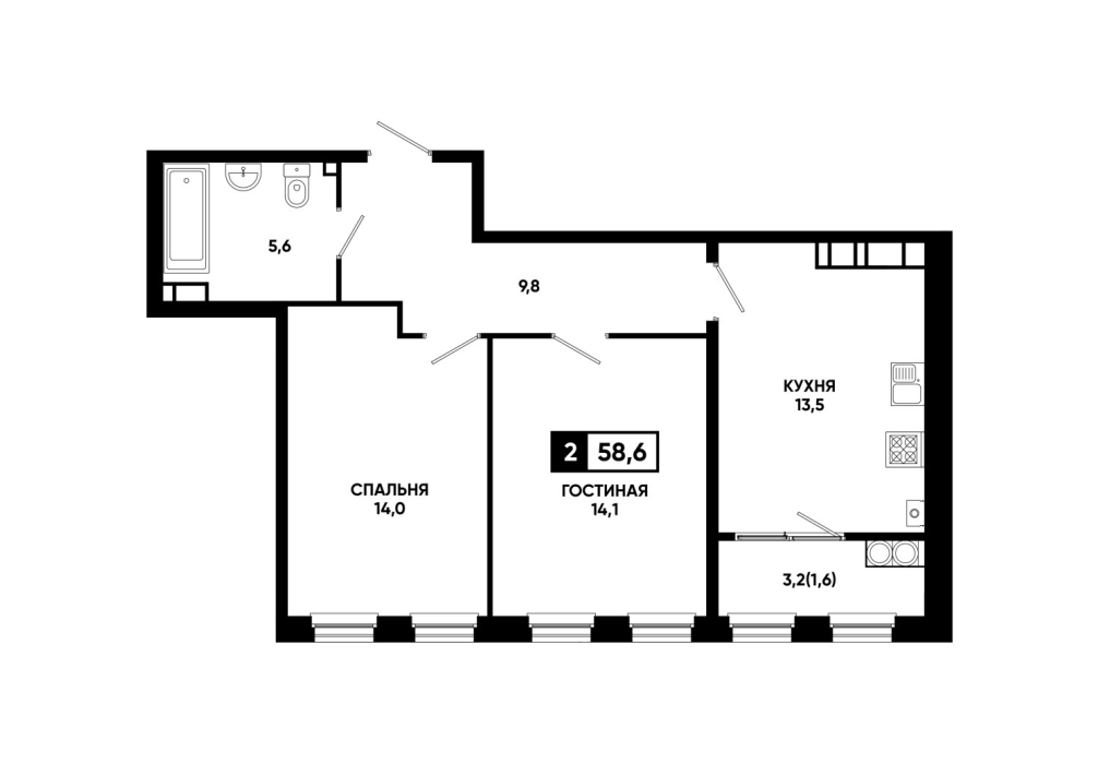 58,6 м²