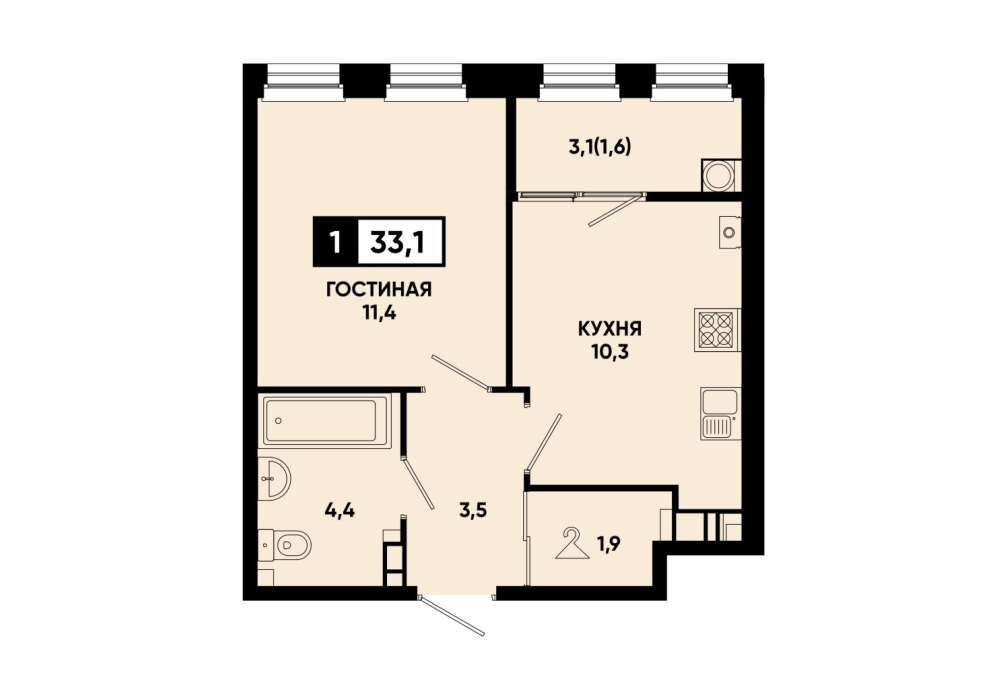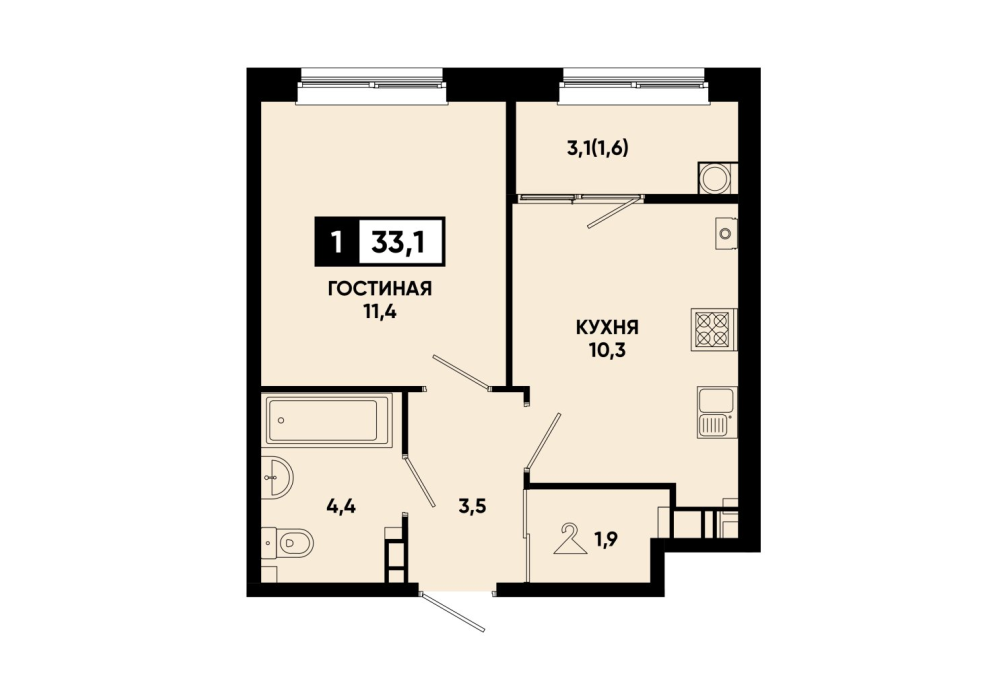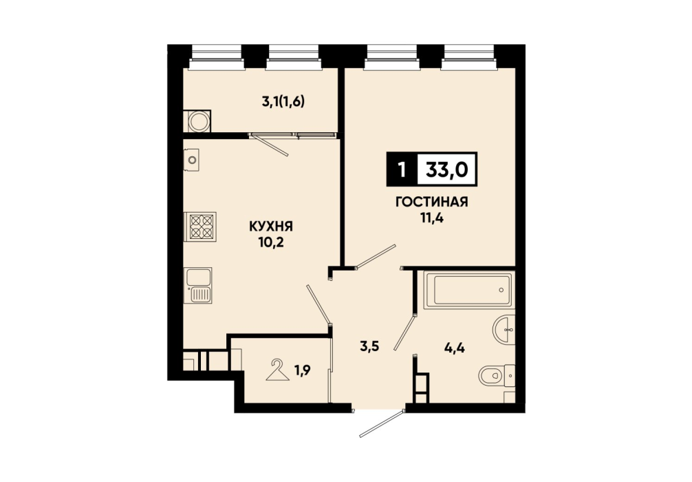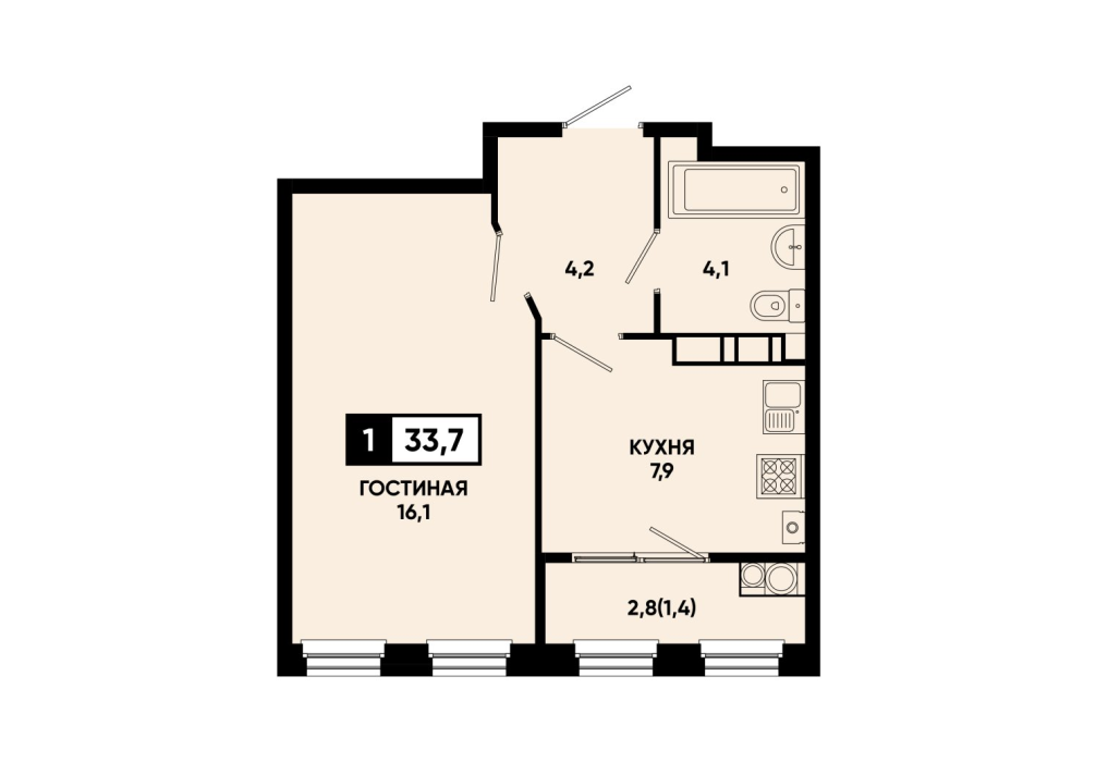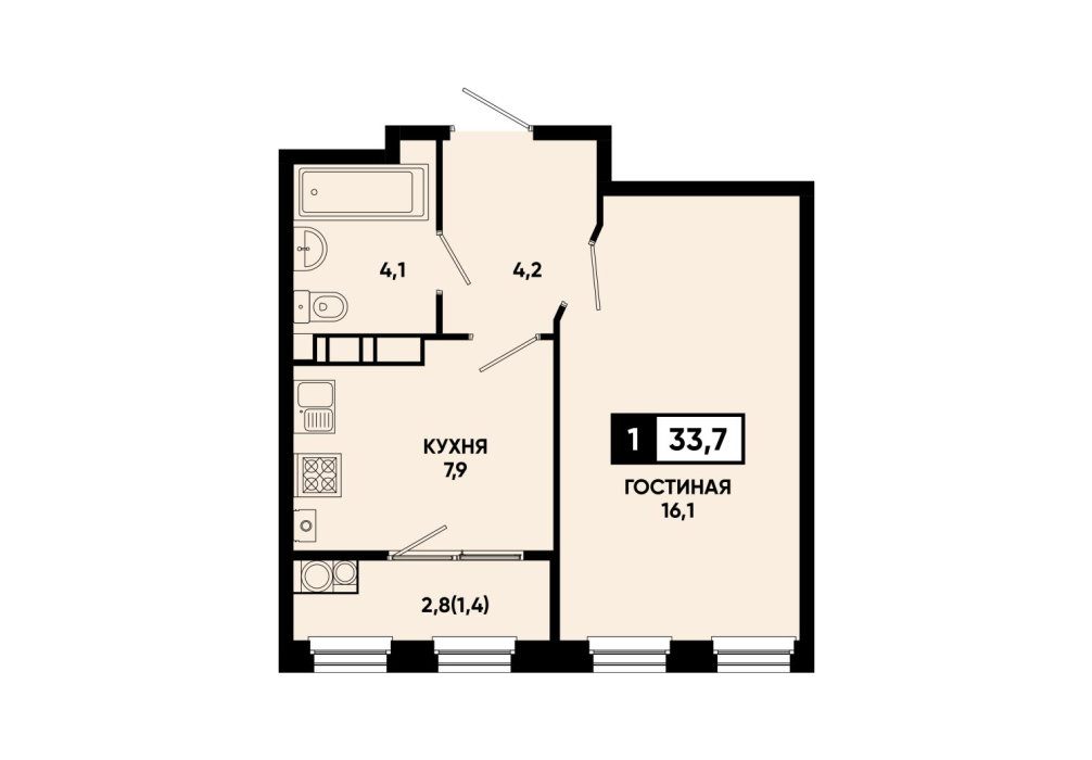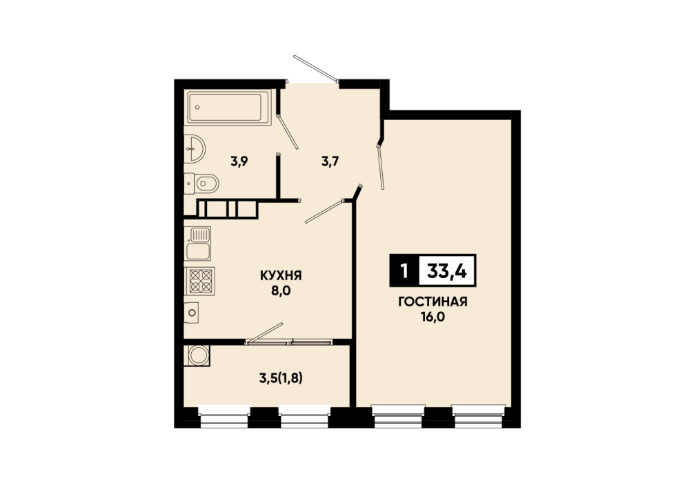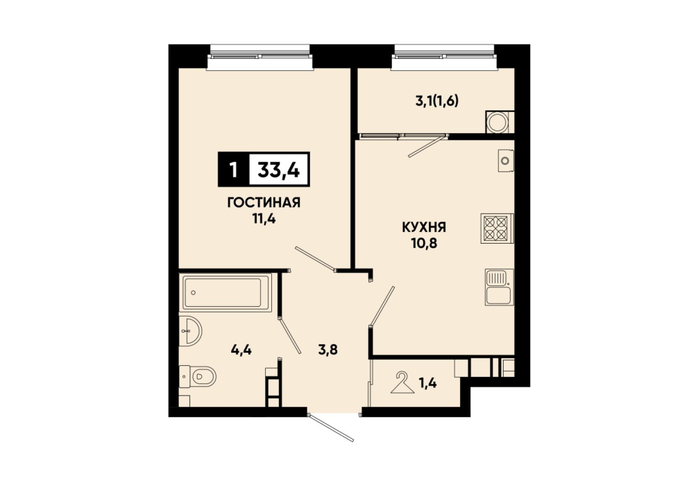 33,4 м²