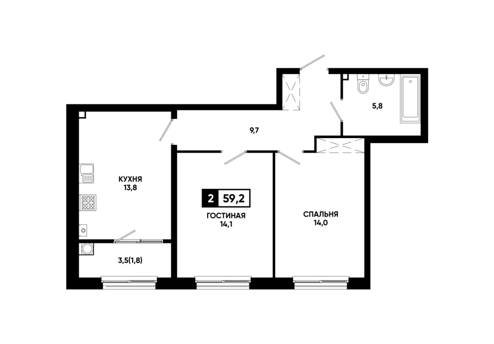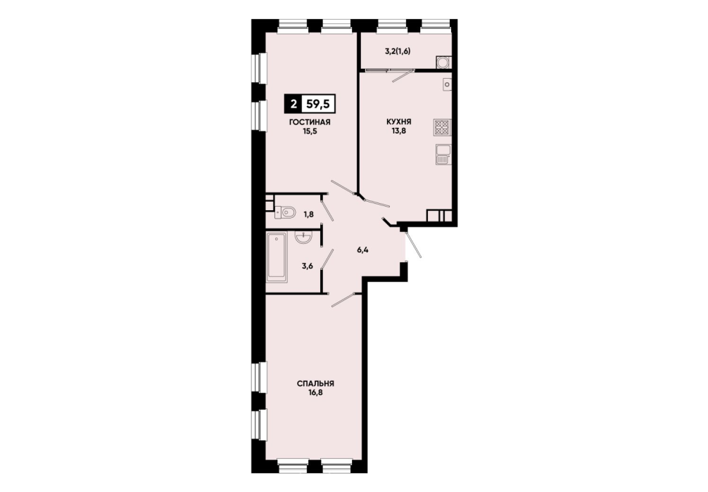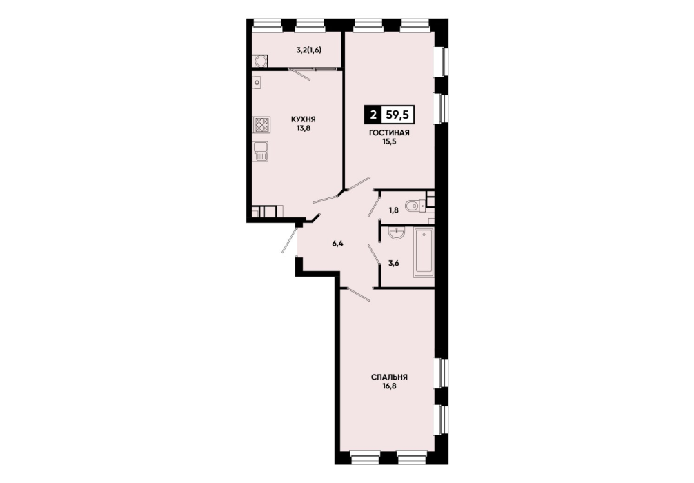 59,5 м²