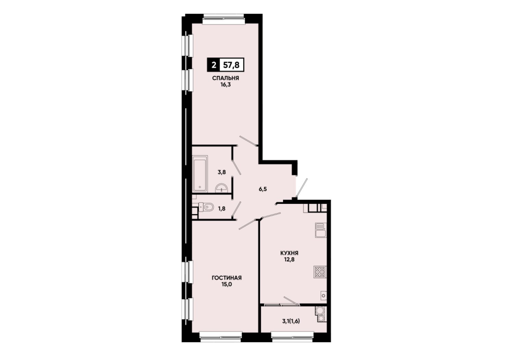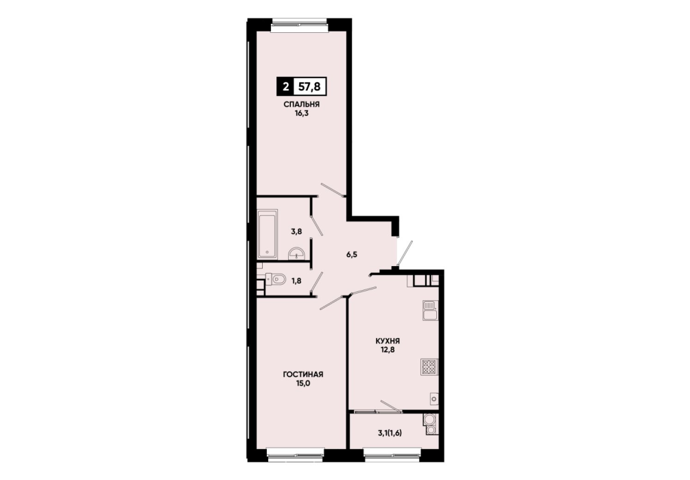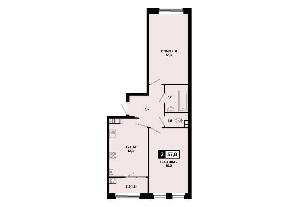 57,8 м²