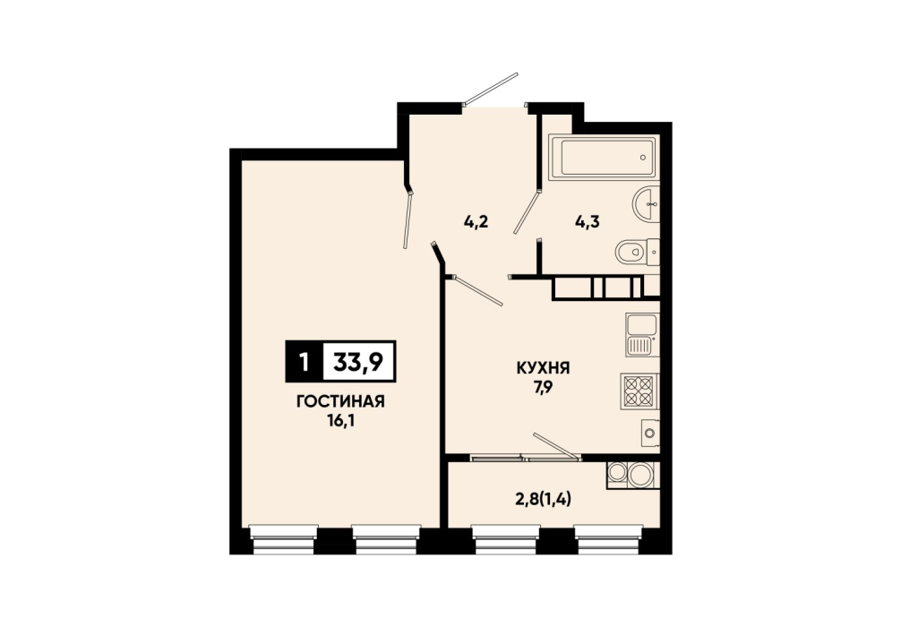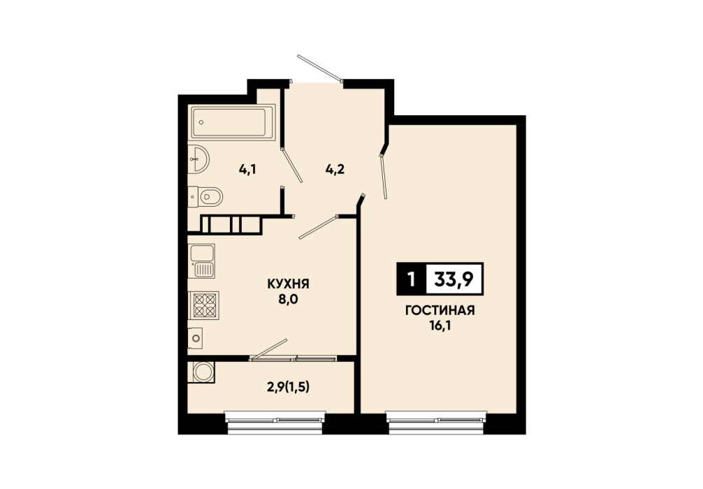 33,9 м²