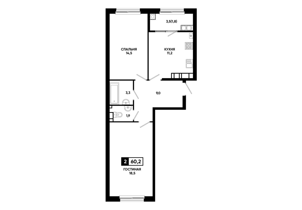 60,5 м²
