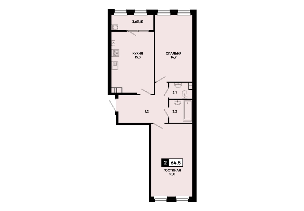 64,4 м²
