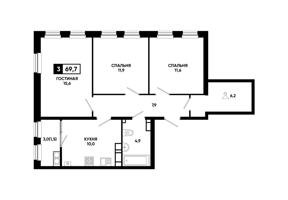 69,7 м²