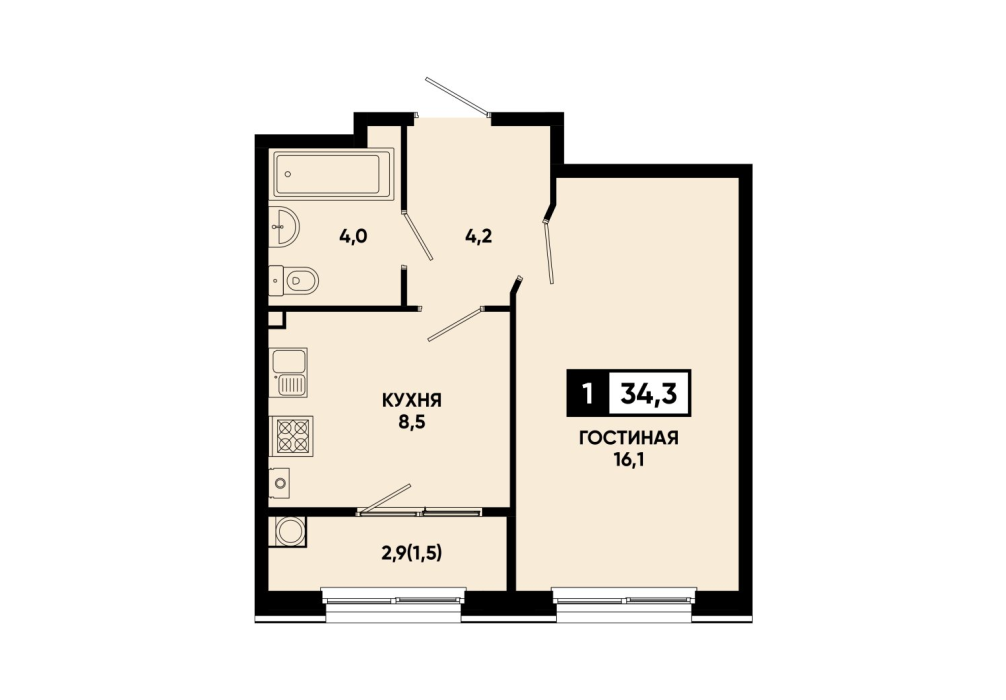 34,3 м²