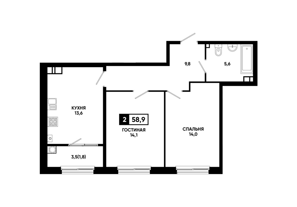 58,9 м²