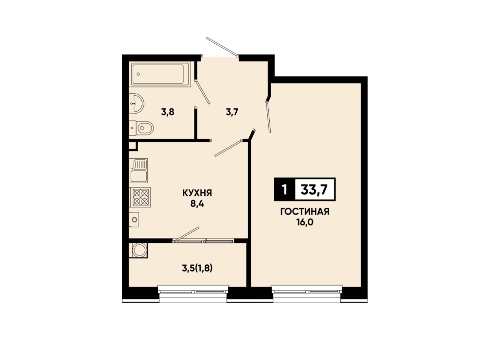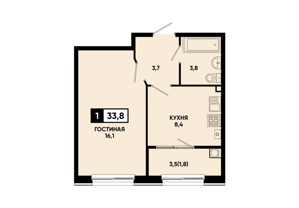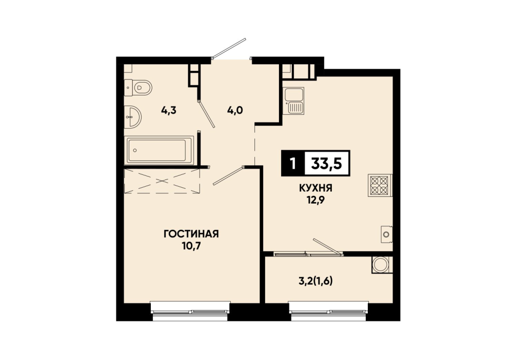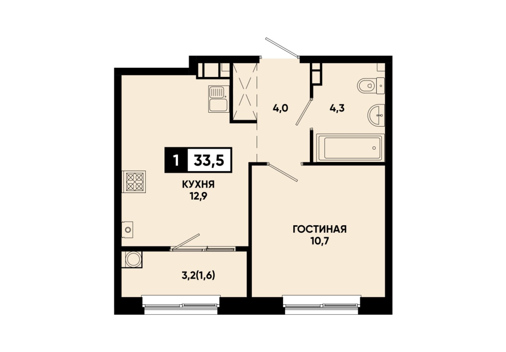 33,5 м²