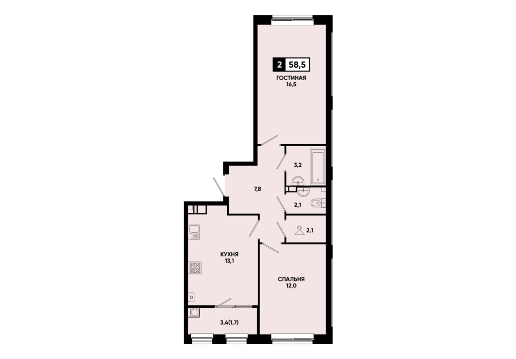 58,5 м²
