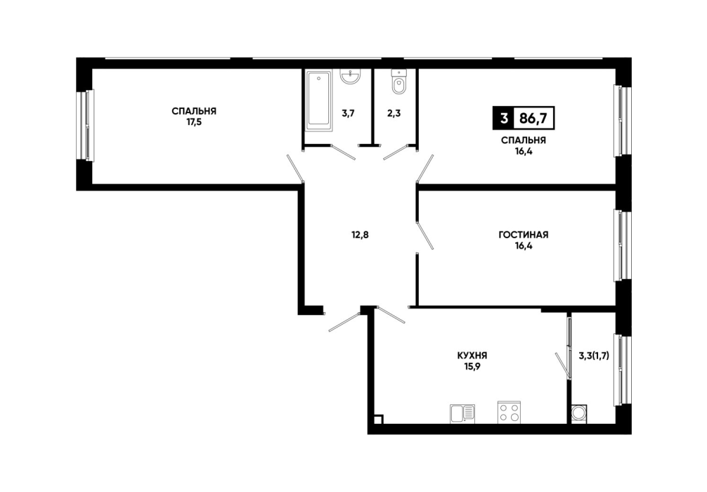 33,3 м²