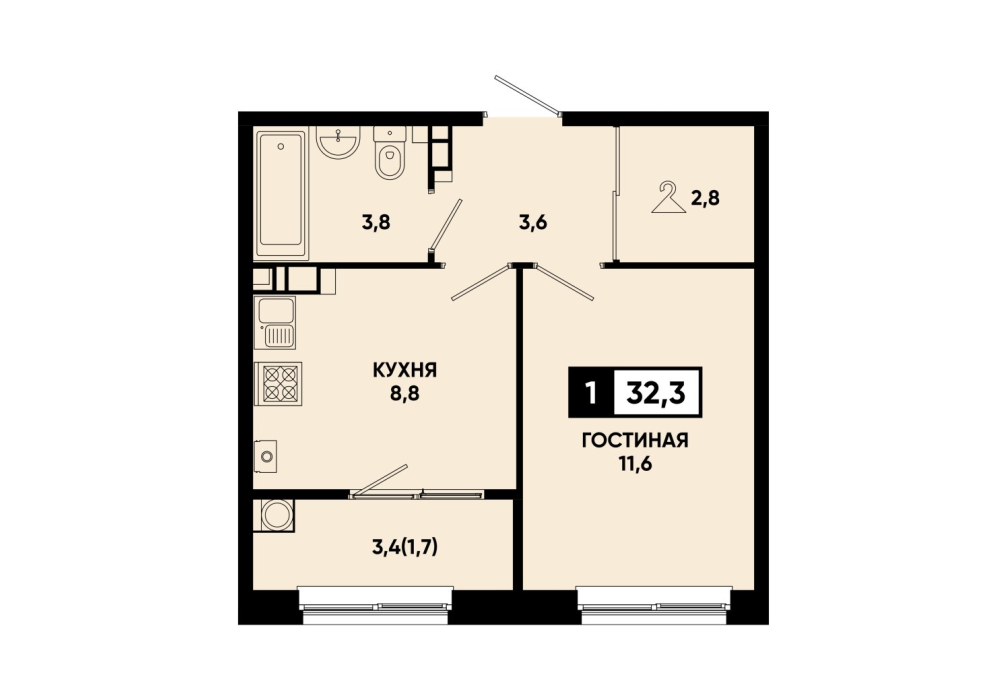 32,3 м²