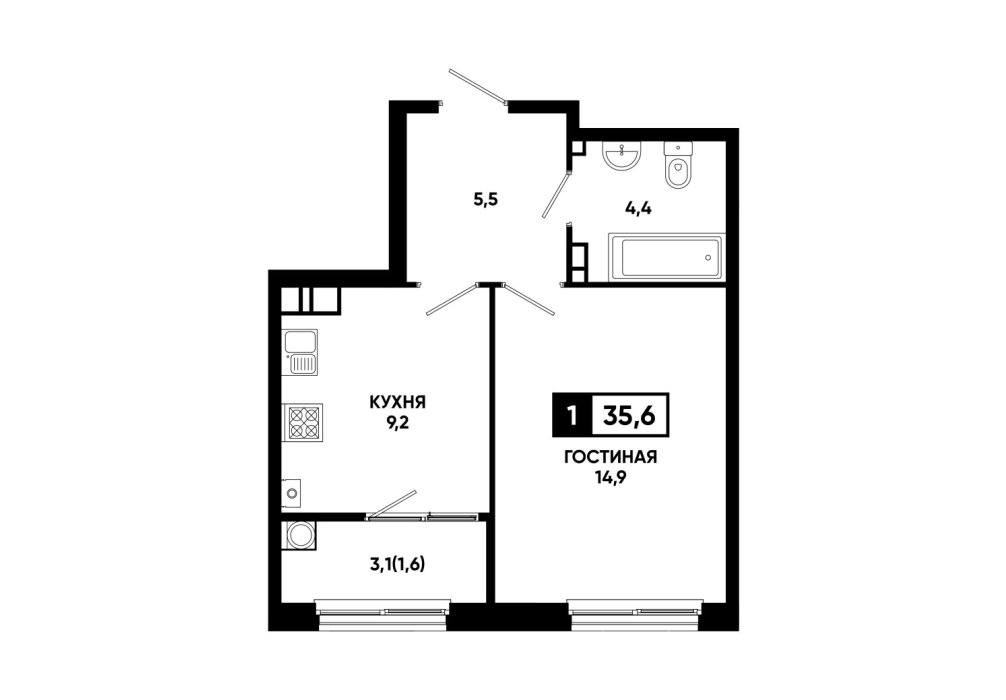 35,6 м²